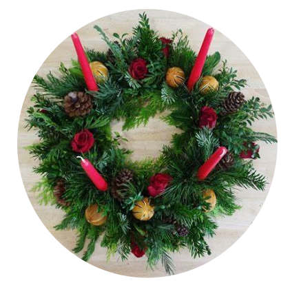 ![]() | The wreath symbolises truths of Jewish and Christian traditions. The circle, without beginning or end, suggests the God who was, who is, and who will |